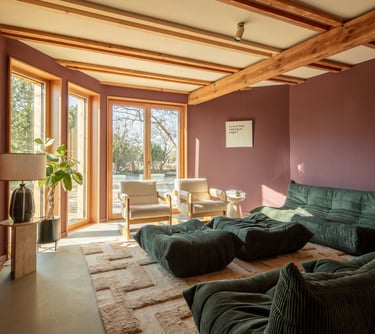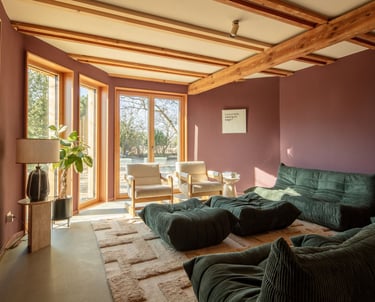 Das Haus verfügt über großzügige Gemeinschaftsbereiche, einen schönen Garten sowie eine Sauna, die während des Retreats genutzt werden kann. Die Kombination aus ländlicher Umgebung, stilvoller Architektur und gemütlicher Atmosphäre macht das Farmhouse zu einem besonderen Ort für ein gemeinsames Retreat-Wochenende.